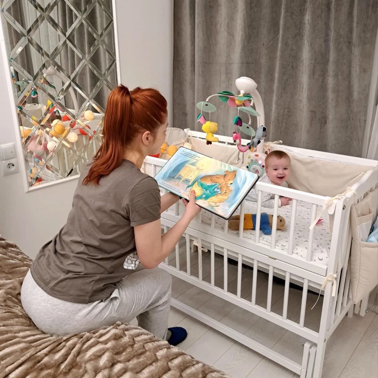 ММ: Yes, she's such, you know, mama's-mama's girl. She falls asleep by herself, that is, by nine in the evening she's already sleeping. And constantly, no matter what I do, at two in the morning she wakes up, starts crying. You need to take her, hug her and put her next to you. That's it, she calms down. That's it, mama is here. She found mama with her hands, put her hands and feet on mama. That's it, mama is here. And with my husband she can't be for long. I don't know why. Maybe she feels that papa starts panicking, I don't know. Probably because, yes, she's such mama's, mama's girl.