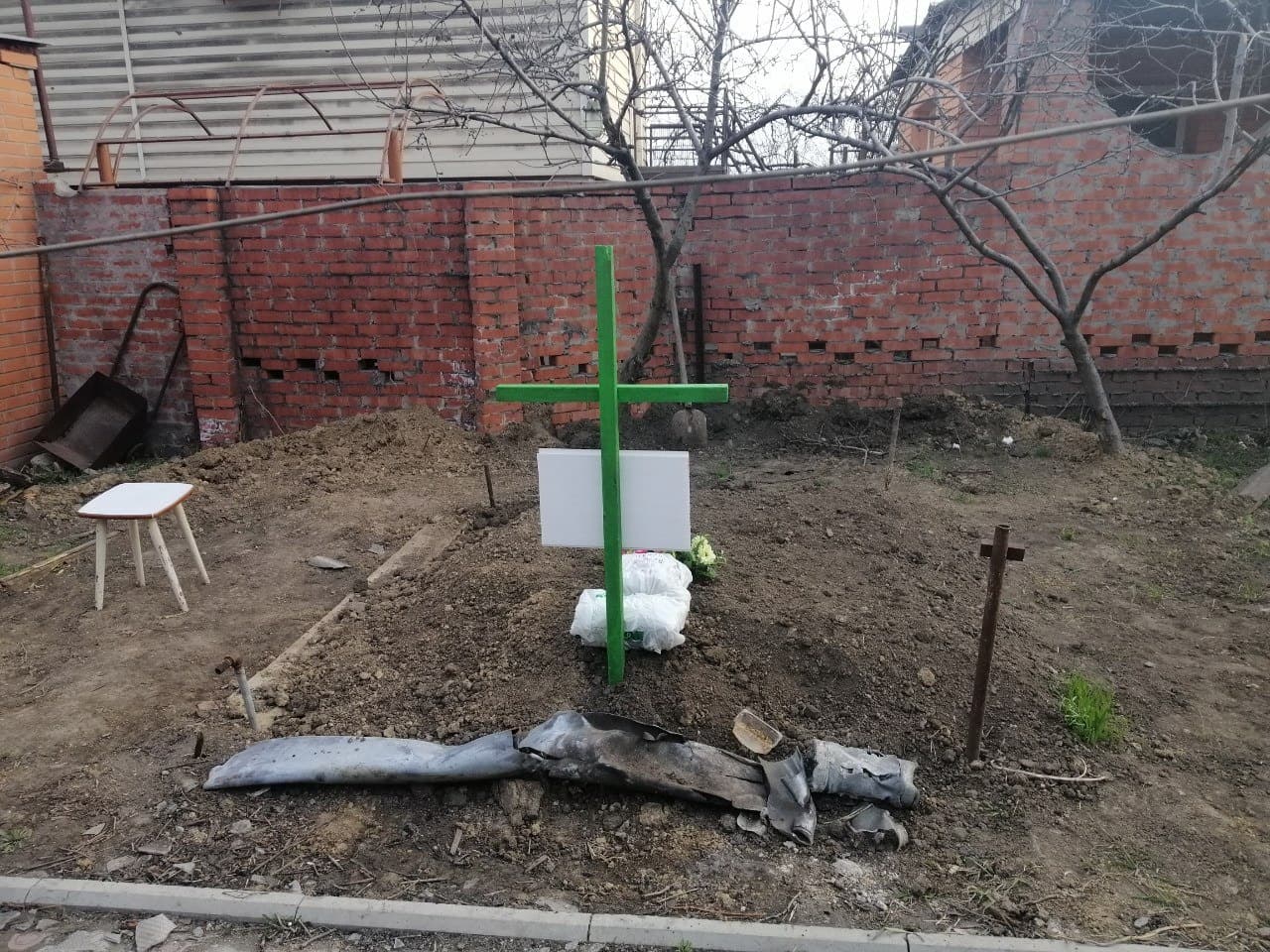 When I jumped out to the street, near the threshold lay one of my daughters, Anya, everything was in blood. She was lying, she already... she nothing absolutely. Plus she was... I don't know, is this necessary or not. A leg was torn off. Already the whole house is in blood, this is right near the house. There stood my son's car, I moved it to the yard. Grandmother maybe wasn't killed because she stood a little behind the car, the car covered her.