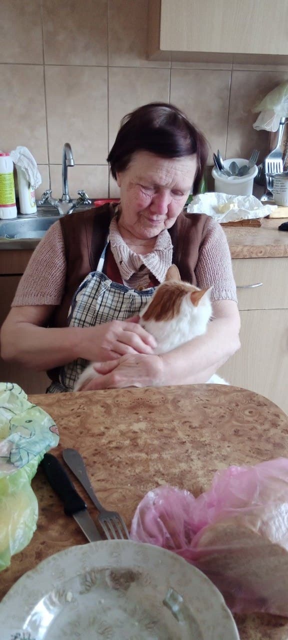 It turned out that I had picked up two kitties to my yard before this. People fed them. Girls brought one cat into the house, well my daughter, Olya: "Dad, well take her. Let her live." And my old cat died of old age, two cats remained. Well okay, I love animals. Then she says: "There's also her sister, the same." I then walked with dogs and took her sister to my yard. I sterilized them, visited the vet, and they all live peacefully in the yard. Then this Natasha, the nurse, when she learned that it turns out these are her cats at my place, says: "Oh, and I was planning to come, see how they live." I showed them to her when we came to my yard. Well these are animal lovers. She always walked, and she always had animal food in her pocket or bag. She says: "Here I am fool, fool. Someone takes food, and I drag cat food." At home in her apartment she has 10 or 12 cats and, by the way, when I went to my house, I also had food. She would say: "Don't you have food at home?" I'd say I'll look: "The girls seemed to bring something." Then I found some, I also gave to her. And she injected my Artur too, while there were medicines, she had something then too. And she injected grandma.